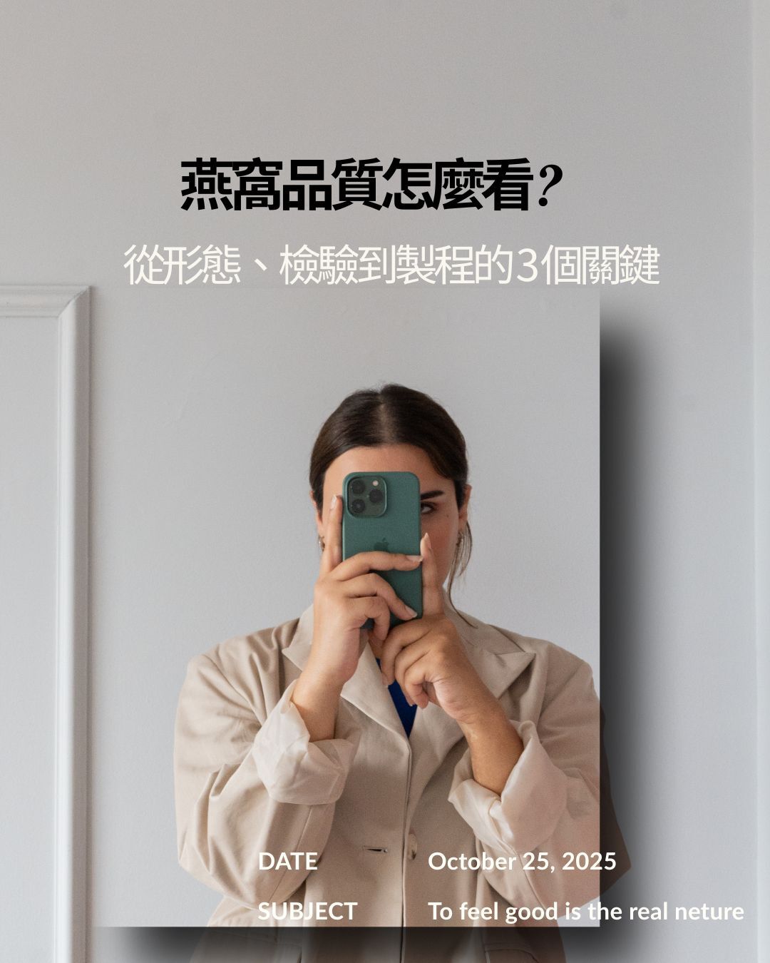 本文延續「燕窩品質從哪裡來」的觀念,進一步說明消費者在實際選購時, 可以如何從燕窩形態、檢驗安全與製程保存三個面向, 判斷燕窩是否符合自身需求與預算。燕窩品質怎麼看?從形態、檢驗到製程的 3 個關鍵在上一篇文章中,我們已經釐清: 燕窩的品質差異,來自產地來源、採收成熟度與整理方式。當你已經理解「品質從哪裡來」, 接下來更重要的是—— 這些差異,要怎麼在實際選購時被看見?本篇會把焦點放在三個「消費者最容易實際判斷」的層面, 幫助你把品質概念,轉化成真正有用的選擇依據。關鍵一:燕窩形態與完整度,影響使用方式與價格結構市面上的燕窩,常被分為燕盞、燕條、燕角與燕碎。 這些分類,並不是營養高低的絕對差別, 而是來自結構完整度與實際使用情境的不同。燕盞:外觀完整、纖維層次分明,適合送禮或重視體驗感的人燕條:保留纖維結構,自用實際,性價比較高燕角:纖維較厚實,耐燉,口感偏扎實燕碎:細碎易料理,適合入門或日常使用形態差異,往往直接反映在價格上。 因此與其問「哪一種最好」, 不如問「哪一種最符合我的使用需求」。👉 若想更深入了解形態差別,可延伸閱讀: 都是燕窩,為什麼要分燕盞、燕條、燕角、燕碎? 關鍵二:檢驗與安全性,看的是「資訊完整度」,不是只有未檢出檢驗,是多數消費者判斷品質時最容易依賴的指標, 但同時也是最容易被誤解的一環。很多人會直覺認為: 「未檢出」=最好, 但實際上,更重要的是檢驗資訊是否清楚、是否符合法規。是否清楚標示檢驗項目與方法結果是否有單位與數值,而非僅一句「合格」是否說明檢驗的目的與適用標準檢驗的價值,在於讓消費者理解產品狀態, 而不是製造安心感用的口號。 當資訊越透明,消費者反而越能理性判斷。關鍵三:製程與保存方式,決定長期穩定度與實際體驗尤其在即食燕窩產品中, 製程與保存方式,往往比外觀看起來更關鍵。同樣使用燕窩原料, 不同的加熱、滅菌與封存方式, 會影響口感穩定度、風味表現與保存條件。是否說明基本製程與處理方式保存條件是否清楚標示是否提供合理的食用與風味建議對消費者而言, 一個願意說清楚製程與保存邏輯的品牌, 通常也更重視產品在你手上的實際表現。把 6 個品質因素串起來看,價格只是最後的結果當你把上篇提到的「品質來源」, 與本篇的「實際判斷」三個關鍵一起看, 就會發現燕窩品質並不是單點比較, 而是一整個可以被理解的系統。在這個系統裡:價格不是起點,而是結果外觀不是標準,而是其中一環真正有價值的,是資訊是否完整透明結語:好的燕窩,是「適合你」的選擇燕窩品質的判斷,從來不是為了選出「最貴的一款」, 而是幫助你在預算、使用頻率與生活方式之間, 做出長期可持續的選擇。當你能看懂形態、理解檢驗、知道製程差異, 你就不再需要被單一話術牽著走, 而是能用自己的邏輯,判斷什麼是「好品質的燕窩」。👉 延伸閱讀(上篇): 燕窩真的有分品質嗎?先搞懂影響好壞的 3 個關鍵