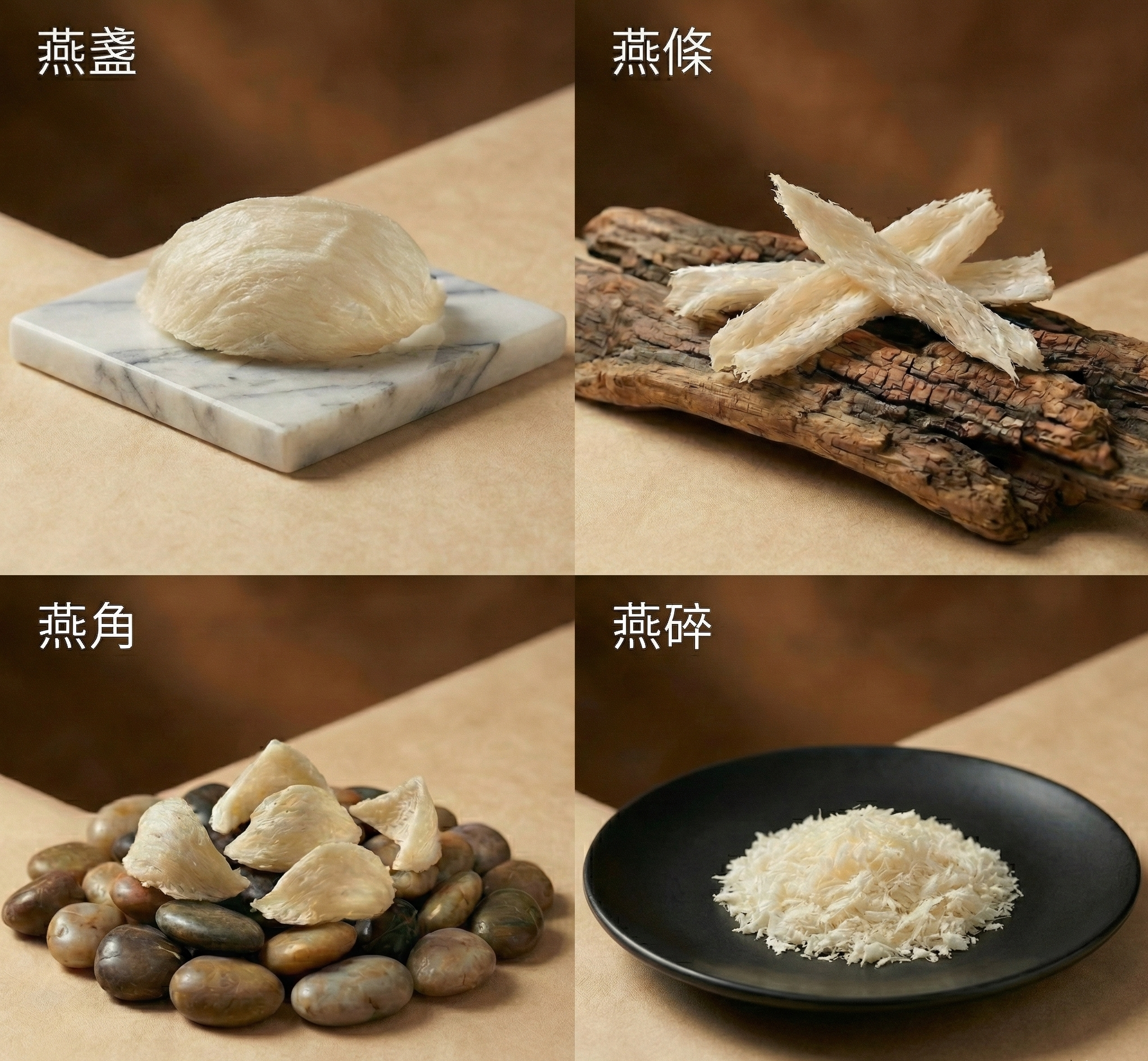本文將系統性解析市面上常見的燕窩分類, 包括燕盞、燕條、燕角與燕碎, 從外觀完整度、口感特性、燉煮方式與實際使用情境出發, 幫助你理解不同形態燕窩的優點與注意事項, 避免只憑價格或話術做選擇。都是燕窩,為什麼還要分燕盞、燕條、燕角、燕碎?初次接觸燕窩的人,常會產生疑問: 既然原料都是燕窩, 為什麼市面上還要細分為燕盞、燕條、燕角、燕碎, 而價格與用途也差異甚大?其實,這些分類並不是以「營養價值高低」來區分, 而是來自燕窩在採收、清洗與整理過程中, 保留完整程度不同, 進而影響外觀、口感與適合的使用方式。燕盞|外觀最完整、辨識度最高的燕窩形態燕盞是指在整理過程中, 盡量保留原始巢型的燕窩, 外觀多呈半月或斗狀, 也是多數人對「燕窩」最直觀的印象。由於清洗與挑毛時需維持結構完整, 整理難度高、耗時長, 因此外觀等級通常較高。主要優點:外型完整、層次分明,燉煮後口感細緻適合情境:送禮需求、重視外觀與口感體驗者注意事項:價格較高,須留意是否為修補盞或刷膠處理燕條|兼顧口感與實用性的日常選擇燕條多半來自燕盞在整理過程中自然分離的條狀結構, 並非品質較差, 而是外觀不再呈現完整盞型。在纖維結構上, 燕條仍保有燕窩原有特性, 燉煮後口感柔順, 是許多日常滋補族群的實用選擇。主要優點:纖維完整、口感穩定適合情境:日常自用、長期穩定補充注意事項:需確認來源與清洗是否確實燕角|纖維最密實、耐燉度最高的部位燕角位於燕窩與牆面接觸、固定巢體的位置, 是受力最集中的部位, 因此纖維結構通常較厚實。燉煮前質地偏硬, 但經過充分泡發與慢燉後, 口感會轉為濃郁扎實, 常被用於即食燕窩或長時間燉煮。主要優點:纖維密實、耐燉不易化適合情境:慢燉料理、即食燕窩製作注意事項:需足夠泡發時間,否則口感偏硬燕碎|價格親民、入門型燕窩選擇燕碎是在清洗、挑毛與乾燥過程中, 自然形成的細小碎片, 並非刻意破壞而成。雖然失去完整外型, 但在來源清楚、處理乾淨的前提下, 仍能作為日常熬煮的入門選擇。主要優點:價格相對親民、取得門檻低適合情境:預算考量、初次嘗試者注意事項:需特別留意來源透明度與清潔度燕盞、燕條、燕角、燕碎該怎麼選?選擇哪一種燕窩形態, 並沒有絕對的好壞, 關鍵在於使用目的、預算與飲食習慣。重視外觀或送禮:燕盞日常滋補、自用為主:燕條偏好濃厚口感、耐燉:燕角入門嘗試、預算優先:燕碎燕窩形態燉煮後口感主要優點適合族群與使用情境食用與選購注意事項燕盞纖維層次清楚、口感細緻滑順,燉煮後仍保有完整形狀與彈性,視覺與口感表現最完整。外觀完整、辨識度高,口感層次分明。重視口感體驗者、送禮需求、高端滋養選擇。價格較高,需留意是否為修補盞或刷膠處理。燕條燉煮後自然舒展,口感柔順不易散碎,纖維感明顯但不厚重。兼顧纖維口感與實用性,適合長期補充。日常滋補、自用族群、規律補充者。需確認來源清楚、清洗與挑毛是否確實。燕角經充分泡發與慢燉後,口感濃厚扎實,纖維存在感強。纖維密實、耐燉,不易化開。偏好厚實口感者、慢燉料理、即食燕窩製作。泡發與燉煮時間需充足,否則口感偏硬。燕碎口感細緻滑順,纖維感較不明顯,整體偏濃稠。價格親民、入門門檻低。初次嘗試燕窩者、預算考量族群、日常熬煮使用。需特別留意來源透明度與清潔程度。  結語:形態只是表象,來源與產地同樣關鍵燕窩的價值, 不只存在於外觀完整度, 更來自於來源是否清楚、 製程是否透明, 以及是否符合自己的食用需求。當你已理解燕盞、燕條、燕角與燕碎的差異後, 下一步, 就是進一步了解燕窩的「產地來源」。不同國家的燕窩, 在環境、採收方式與市場定位上, 也存在明顯差異。若你想更全面理解, 可延伸閱讀 世界燕窩產地完整解析:印尼、馬來西亞、越南、泰國差異比較 ,幫助你在選購燕窩時,更有依據。